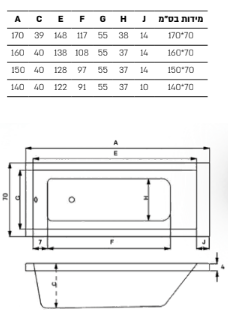 אורך 140-170, רוחב 70, גובה כ- 40 ס"מ