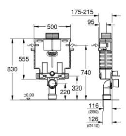 מיכל הדחה סמוי גרואה נמוך לקיר בלוקים + לחצן מרובע בגימור מבריק GROHE 38415001