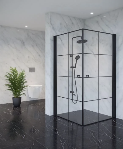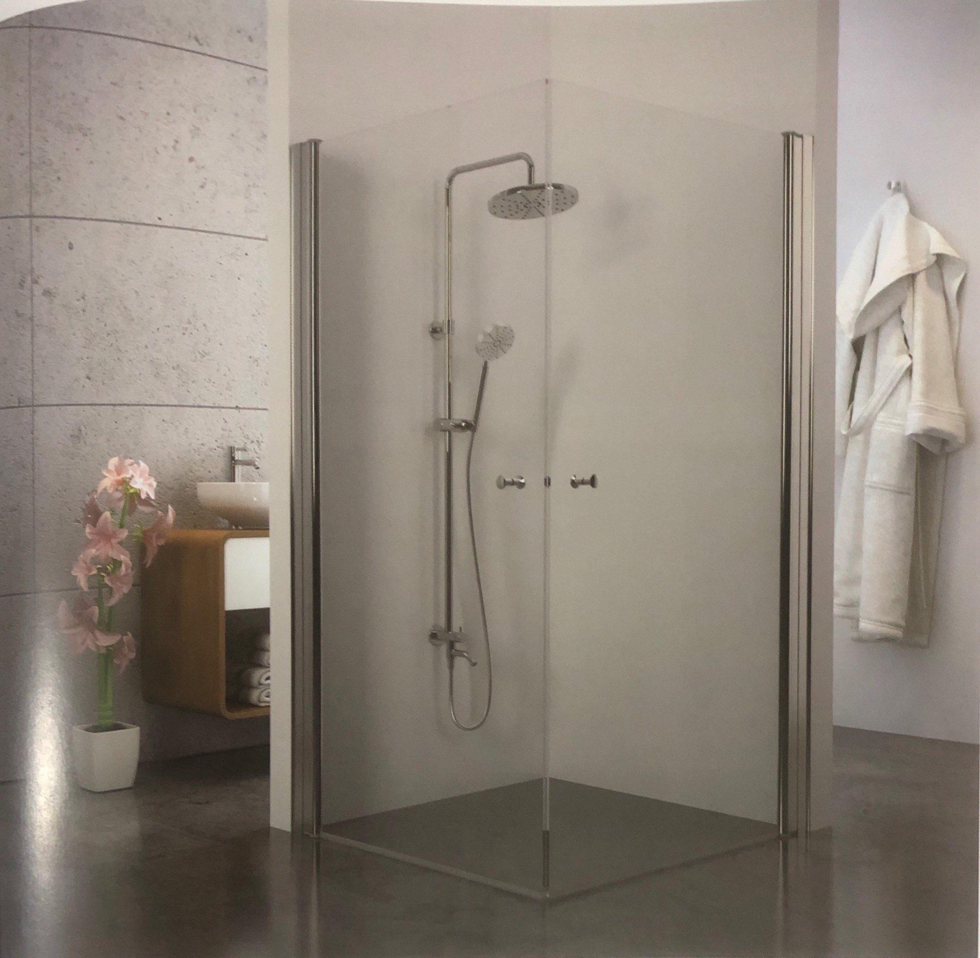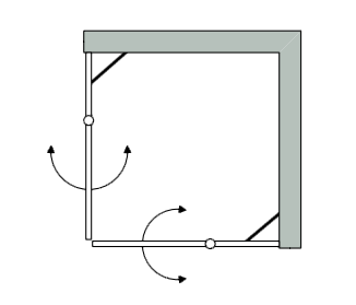 מפרט: מקלחון שתי דלתות על ציר הנפתחות פנימה והחוצה, גובה 185 ס“מ