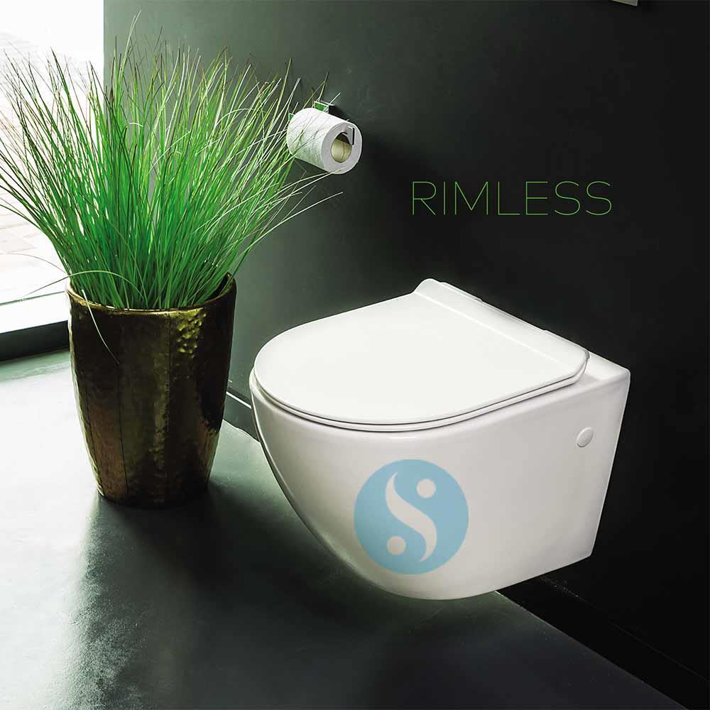 סט אסלה ביצתית רים לס + מיכל הדחה גרואה סמוי + לחצן ניקל + מושב טריקה שקטה
